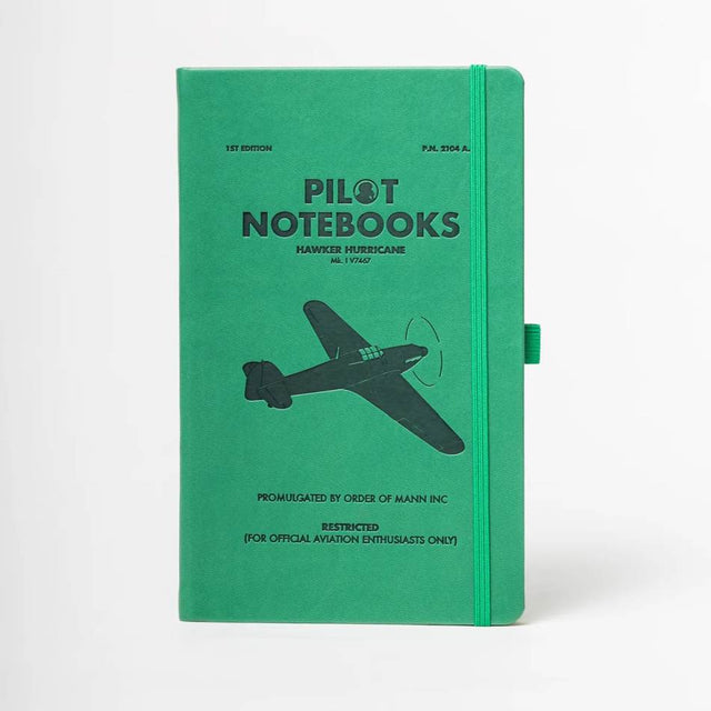 Hurricane design blind embossed into a soft touch Italian notebook, expertly crafted like a WWII aircrew jacket, the Replica Pilot Notebook design collection features soft and flexible materials, accurate details and an exclusive blocked design. The notebook colour is Forest Green, with an authentic WWII style.