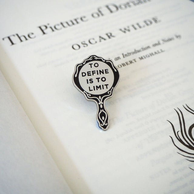 Part of our Gothic Literature collection, this black and silver enamel pin takes inspiration from Oscar Wilde's popular novel and is inscribed with the quote 'To define is to limit.'