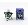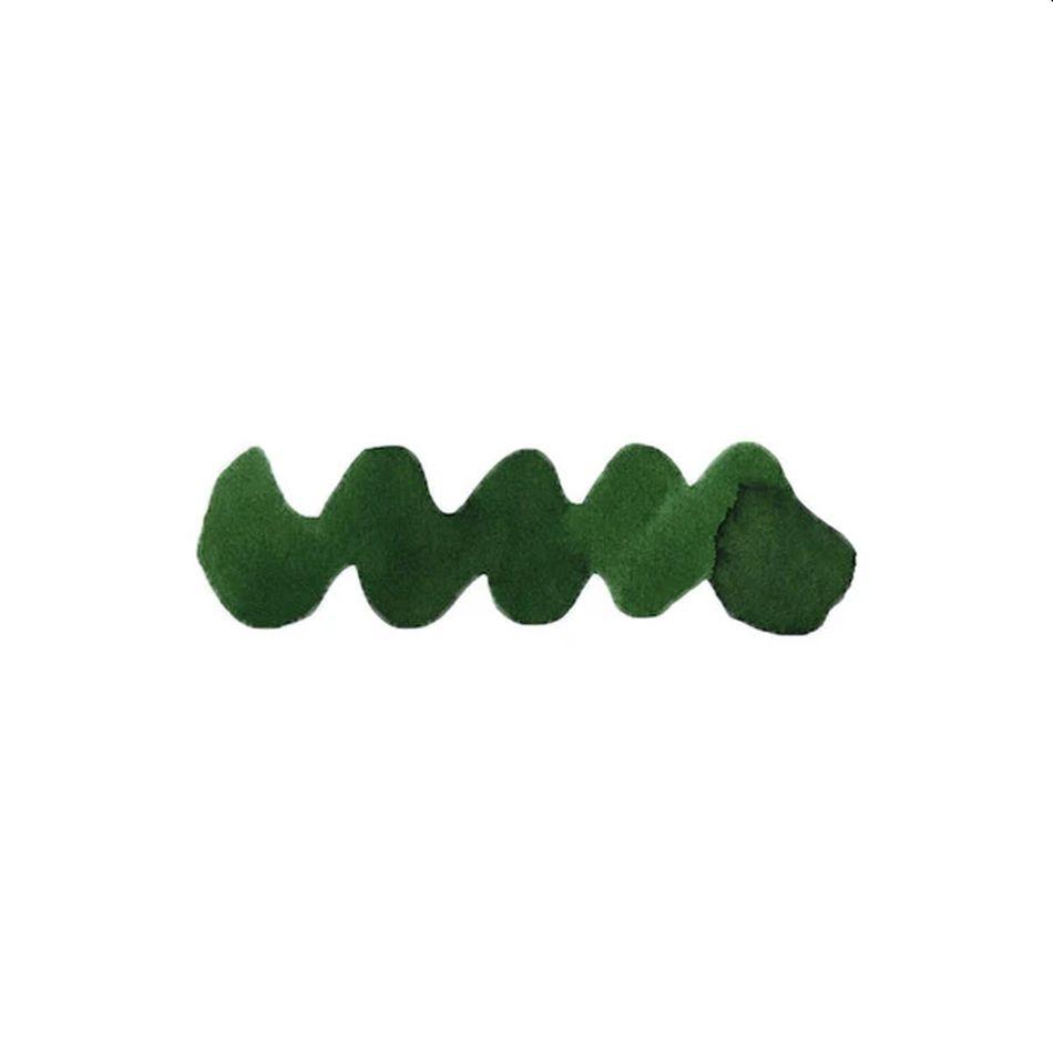 Diamine Elf is a green sheening fountain pen ink, from Diamine’s 2019 Blue Edition Advent Calendar, which featured 25 brand new colours. Elf is among the most quick-drying Blue Edition inks, and is a great, consistent dark green shade. It comes beautifully presented in a uniquely shaped 50ml glass bottle.