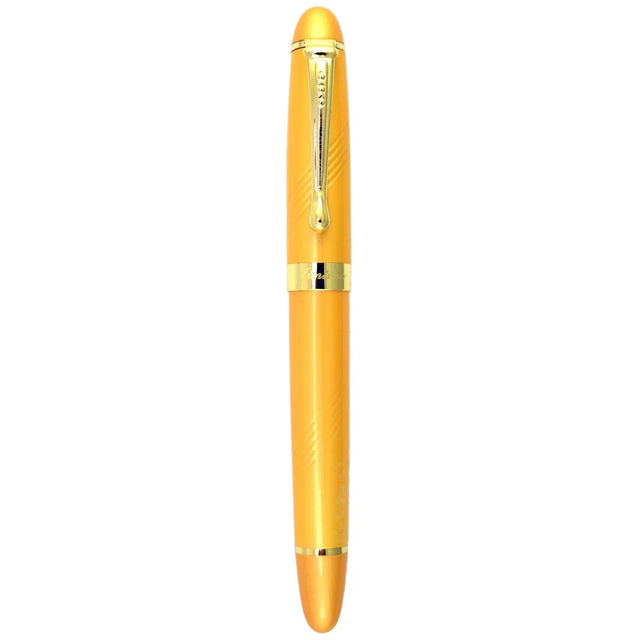 Jinhao X450 fountain pen in a black acrylic material and gold trim. Classic fountain pen style.