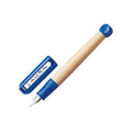 Made of maple wood, cap and cube of blue plastic. Non-slip, rubberised plastic grip with triangular profile. Pack contains a set of write-on name stickers in various colours. Tough polished steel beginners 'A' nib in medium point.