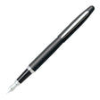 The Sheaffer VFM Fountain Pen in Matte Black is a quality pen at an affordable price. Its matte black colour scheme is complemented beautifully by a polished nickel trim. A slim, compact design, it measures 13.8cm in length closed (12.1cm open) and weighs just 18g, while the cap bears the Sheaffer White Dot hallmark of quality. Please note that this pen is not suitable for use with a converter, and can only use the short type of standard international cartridges. It does however come supplied with both one black and one blue cartridge, and is presented in a luxury gift box.