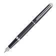 Steel nib in medium width to match the Chrome trim. Push fit metal cap.
